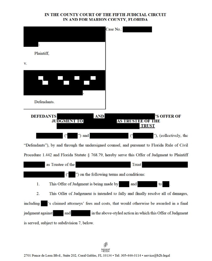 Florida’s offer of Judgment, § 768.79, is often misunderstood as a settlement tactic when, in reality, it operates as a powerful fee-shifting device. When properly drafted and served, a proposal that is rejected becomes a statutory trigger once the defendant obtains a judgment of no liability. Here, the Defense served the Proposal for Settlement early, at a moment when the record already reflected the central legal deficiencies but before the parties had incurred unnecessary expense. This timing was intentional. The early service of the proposal demonstrated the Defendants’ willingness to resolve the case efficiently while positioning them to recover fees if the Plaintiff chose to continue litigating despite the clear legal barriers to recovery.